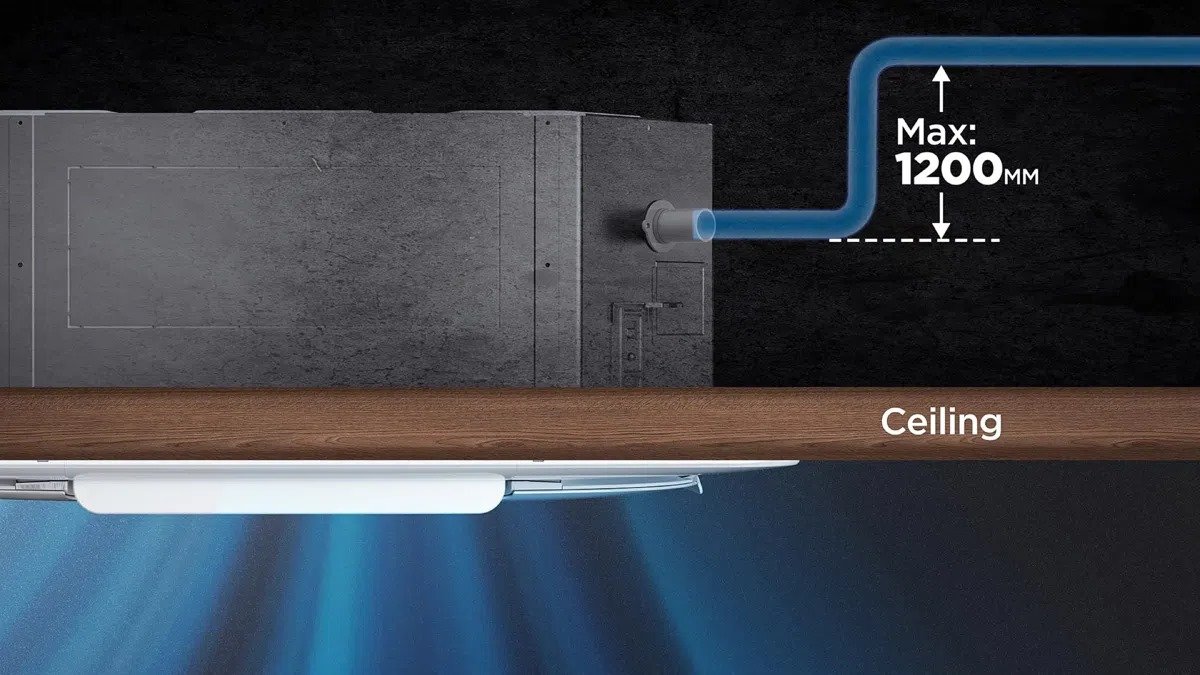 Njësia ka një pompë të integruar uji, e cila mund të arrijë lartësi deri në 1200 mm, duke ndihmuar instalimin e tubave të shkarkimit.