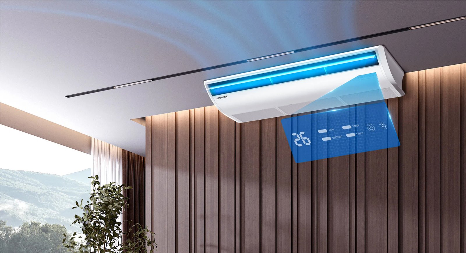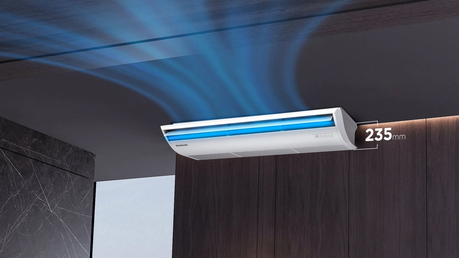 Lloji i kondicionerit për tavan dhe dysheme sjell një nivel të ri kontrolli dhe komoditeti. Këndi i madh i daljes së ajrit mund të rregullohet në modalitet pa erë, shmangie të erës ose drejtim të drejtpërdrejtë të erës, duke përmbushur nevojat e ndryshme në ambientet e zyrës..