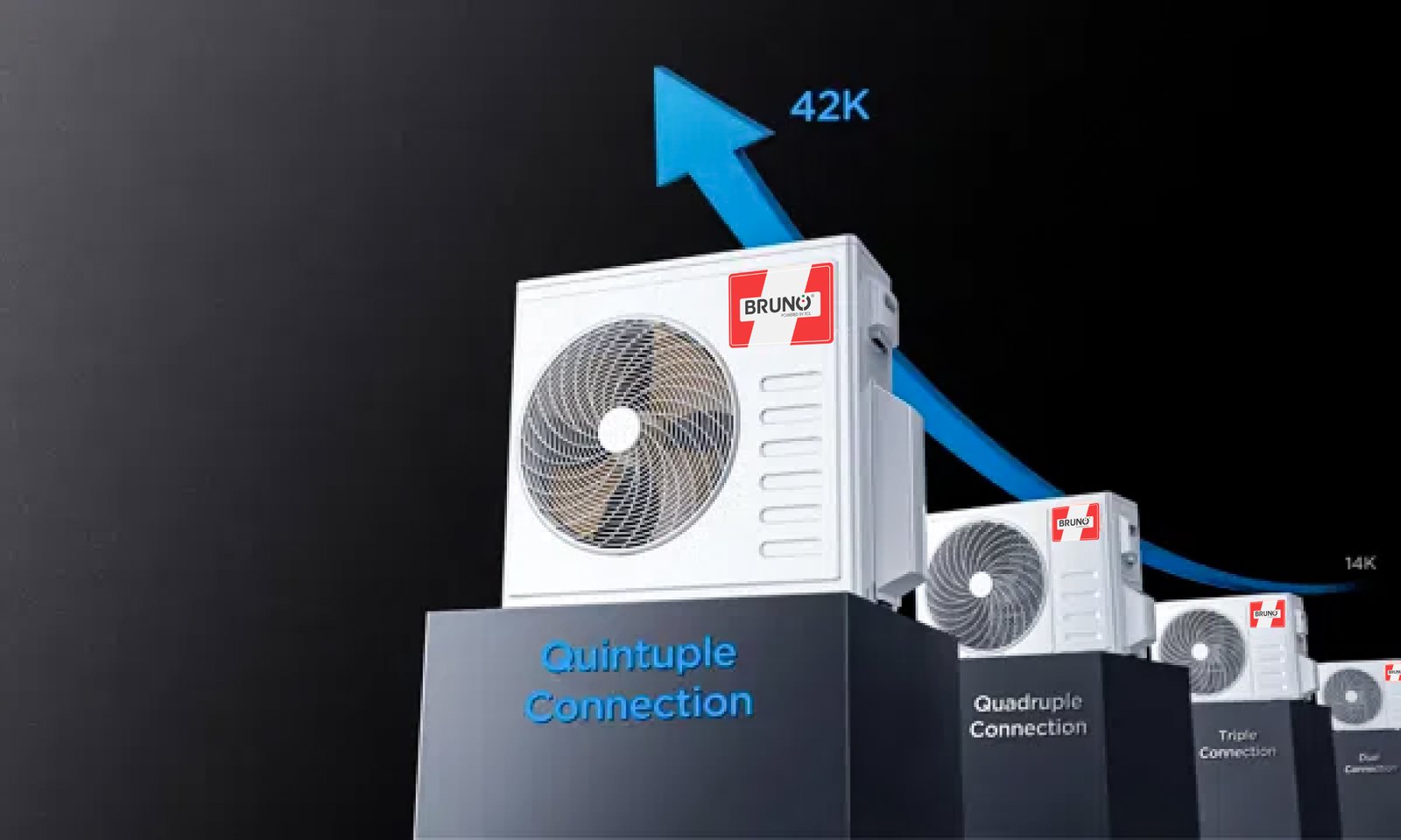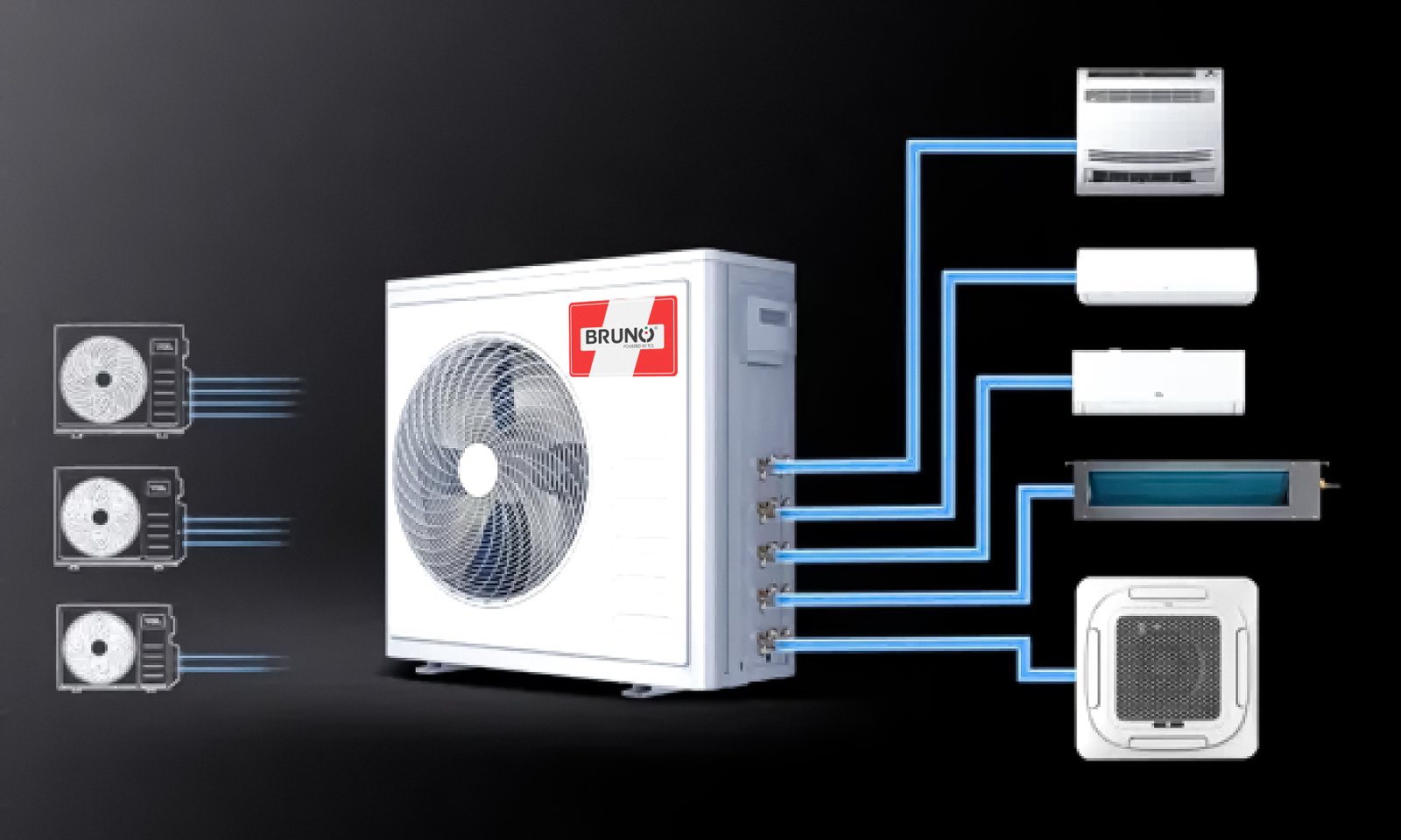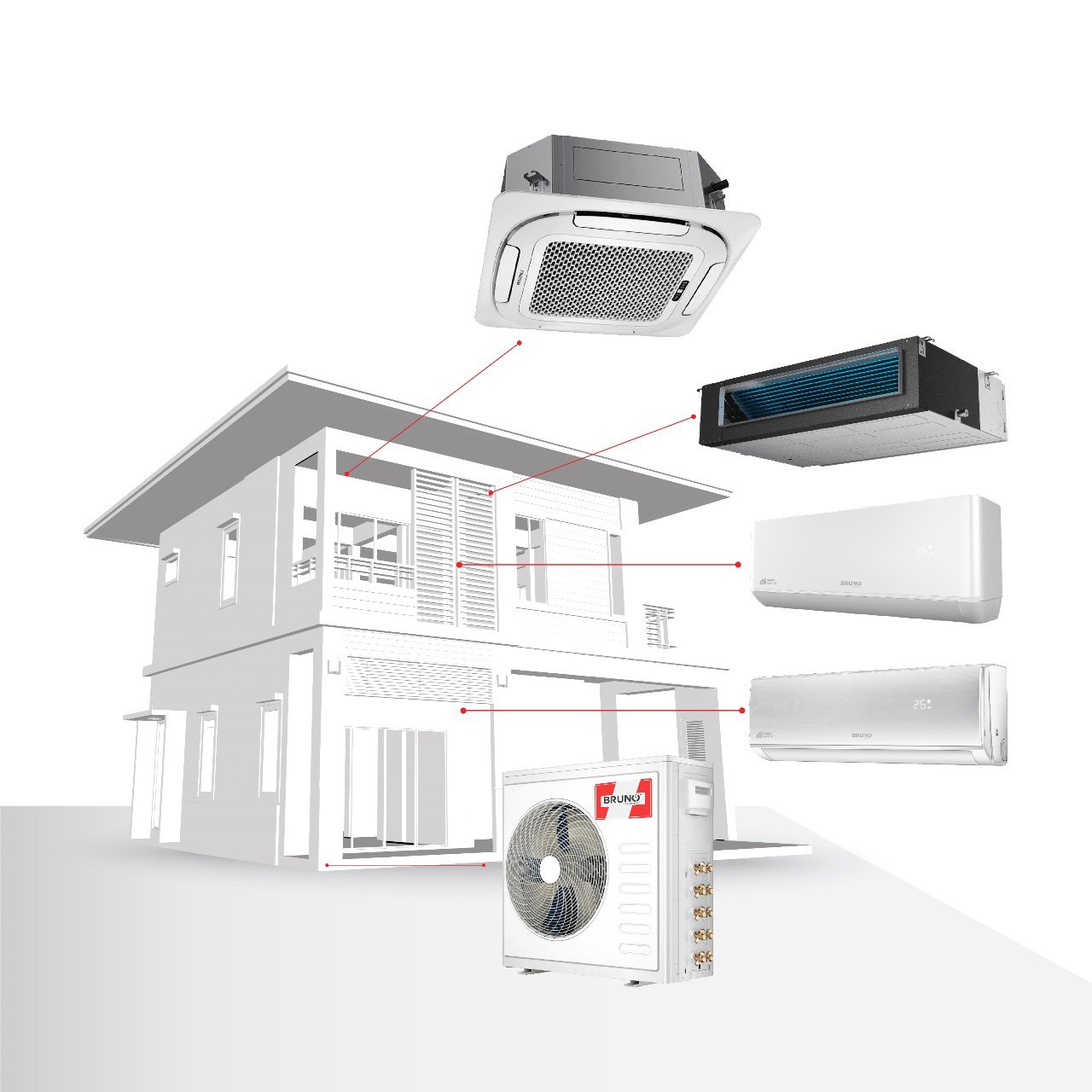 Në një njësi të jashtme mund të lidhen deri në 5 njësi të brendshme si split, një kasetore, një kanalore dhe një njësi që mund të montohet në tavan apo dysheme.
