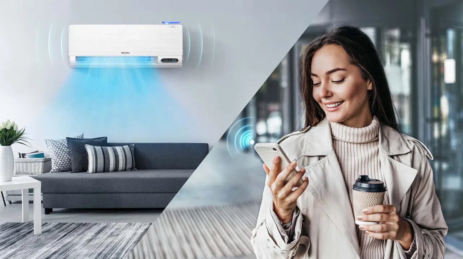 Kontrolloni temperaturën në shtëpinë tuaj në çdo kohë dhe kudo nëpërmjet aplikacionit BrunoAir Home ose nëpërmjet komandave të thjeshta zanore*.